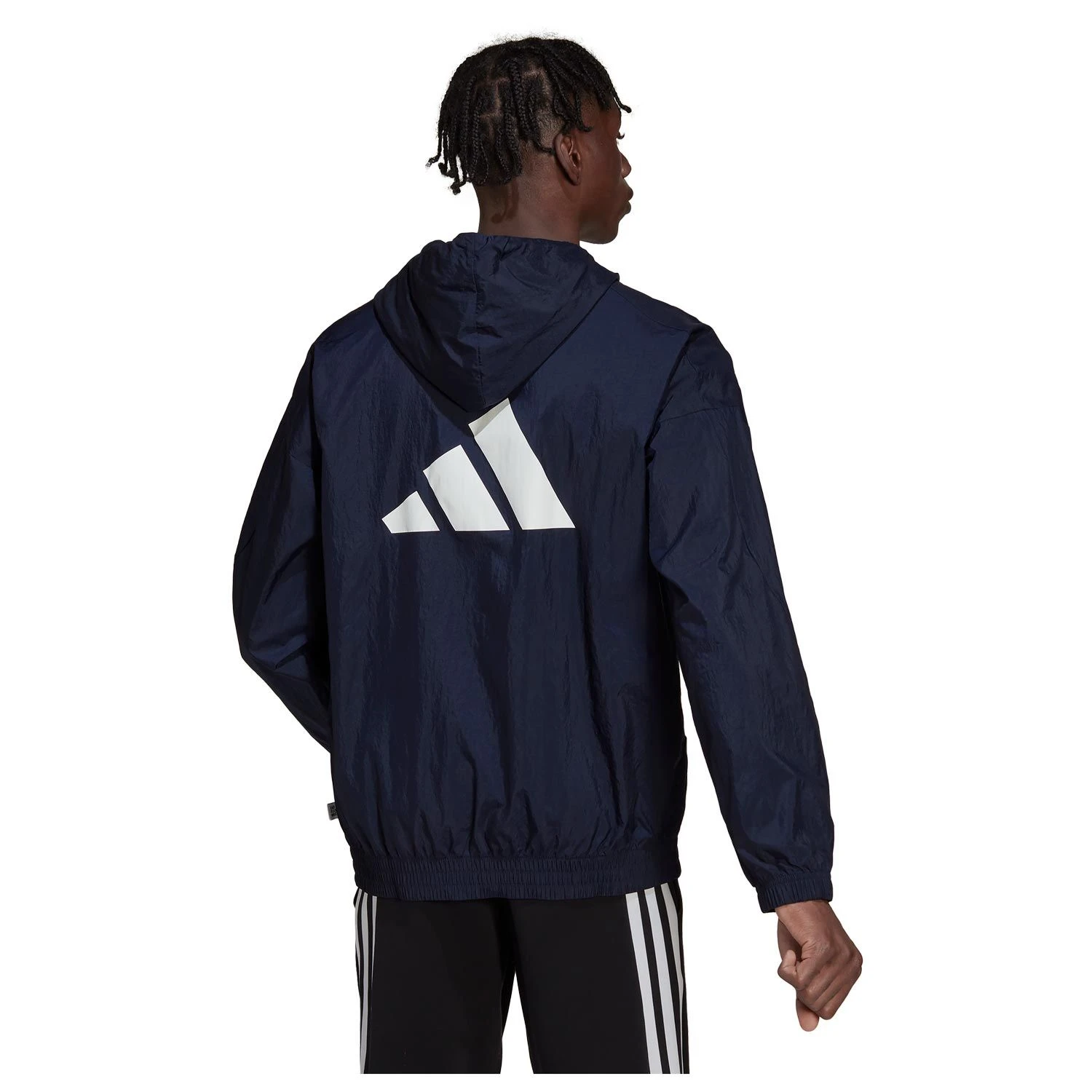 Dieser adidas Windbreaker ist der ideale Begleiter im Alltag. Wenn Wind aufkommt, blockt ihn das sleeke Nylonmaterial einfach ab. Außerdem ist er durch seinen lockeren Schnitt perfekt für Lagenlooks. Als Kontrast zum minimalistische Design sorgt das Statement-Branding auf der Rückseite für einen sportlichen Eyecatcher.