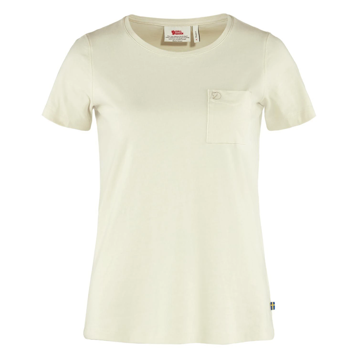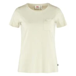 Bequemes T-Shirt mit kurzen Ärmeln und Rundhalsausschnitt aus Baumwoll-Jerseystoff in Bio-Qualität. Brusttasche mit gesticktem Fjällräven Logo.