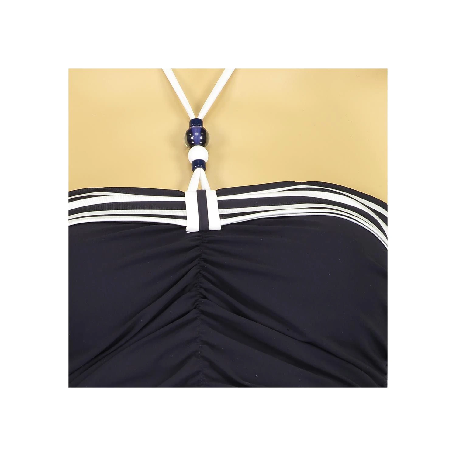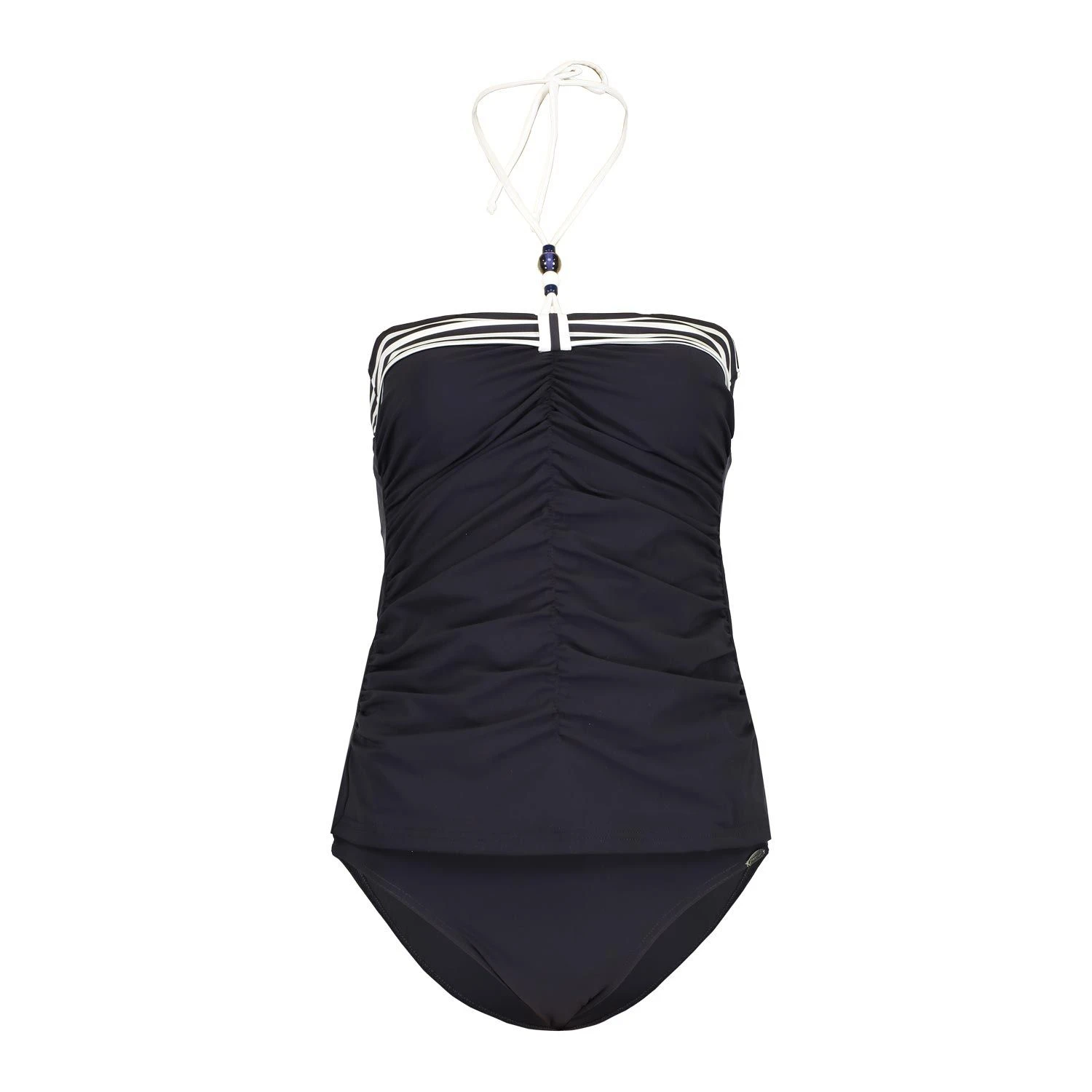 Mit diesem Tankini von Sunflair sehen Sie toll aus! Der enge Schnitt und die Raffung in der Mitte garantieren Ihnen die perfekte Passform und umschmiegt optimal Ihre Figur. Streifendetails am Dekollete und der Neckholder mit Perlen runden Ihren sommerlichen Look perfekt ab. Durch abnehmbare und verstellbare Träger und die wattierten Cups wird Ihnen ein angenehmes und sicheres Tragegefühl garantiert.